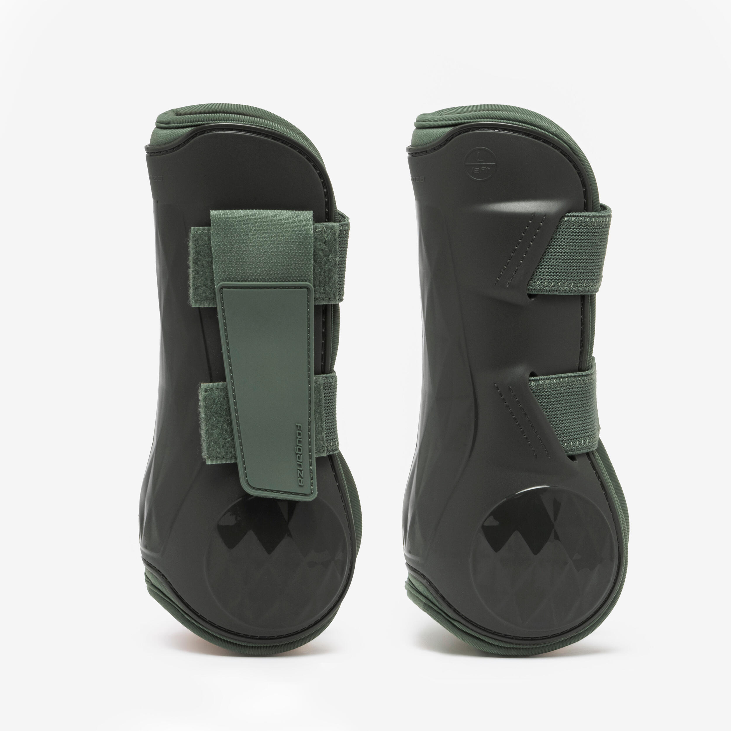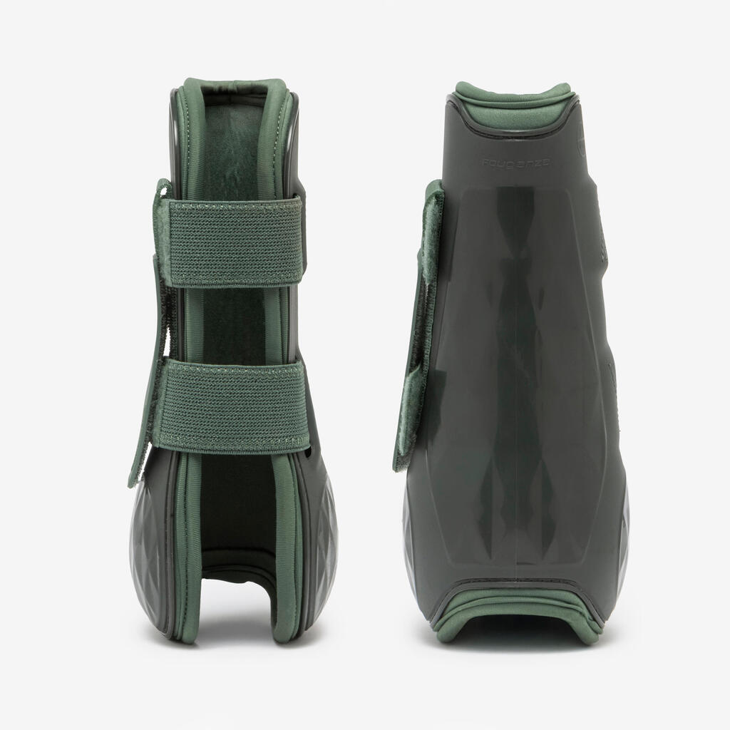 Horse and Pony Riding Tendon Boots 500 Jump Twin-Pack - Smoky Green