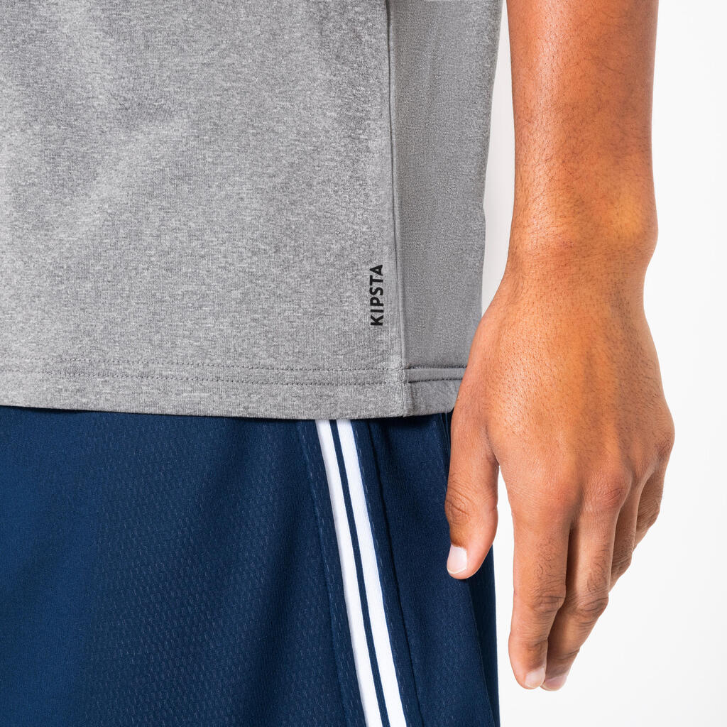 This basketball T-shirt's synthetic fabric (100% polyester) ensures good perspiration wicking (4 stars out of 5 according to normal laboratory standards) to prevent perspiration from staying on the surface of the skin.