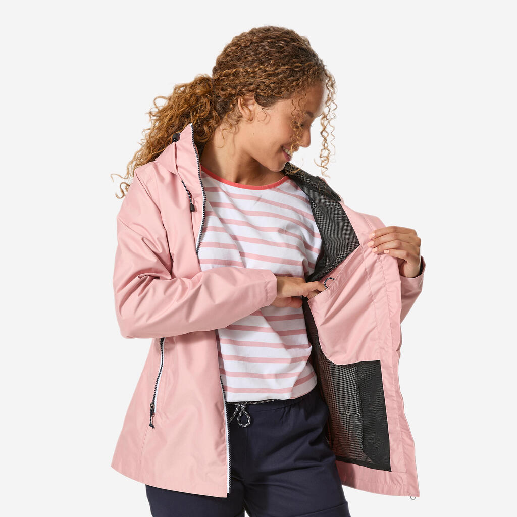 A zip on the entire jacket length with an interior flap protects against the wind and water.