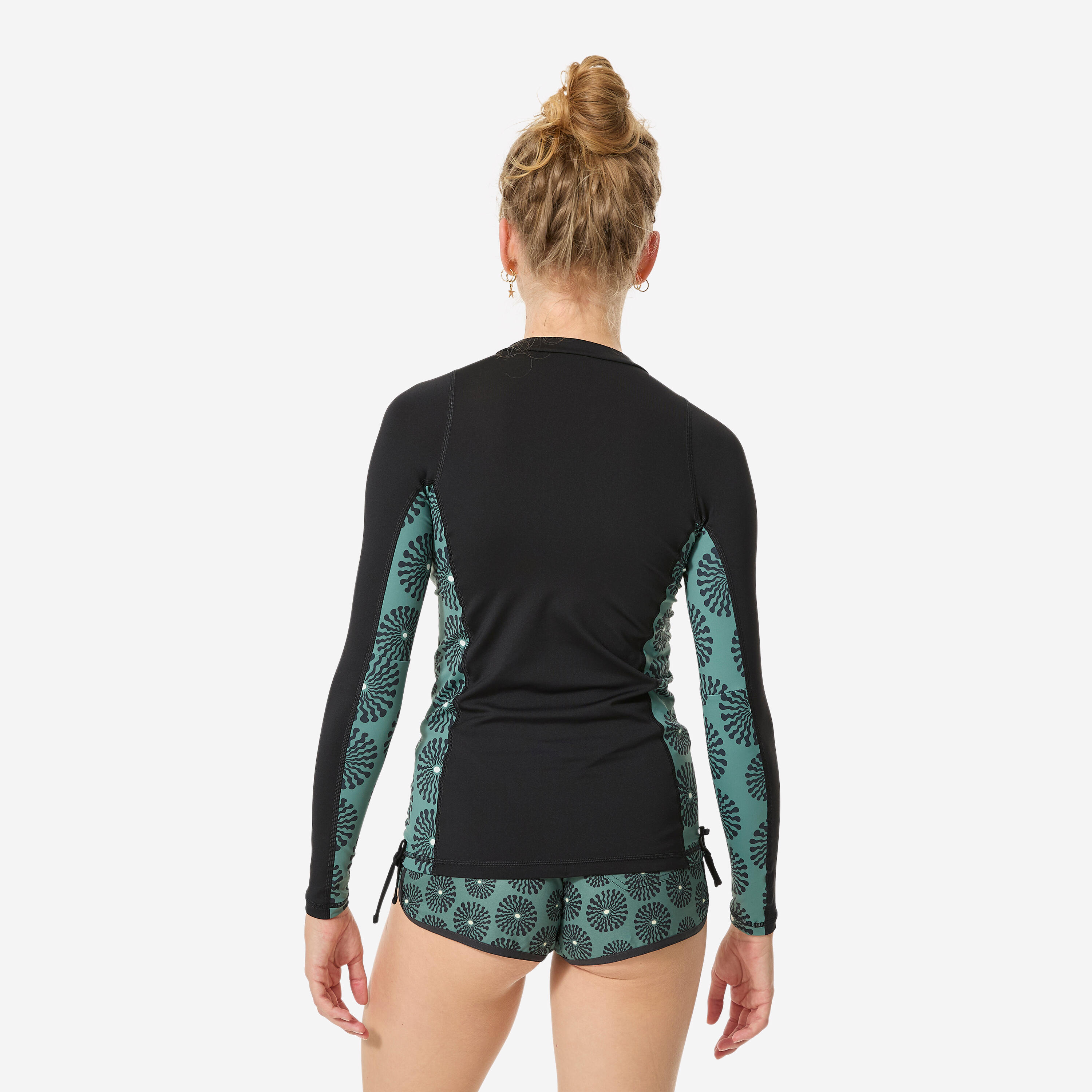 Women’s surfing zipped long sleeve UV-protection top, 500 Sunny black and khaki