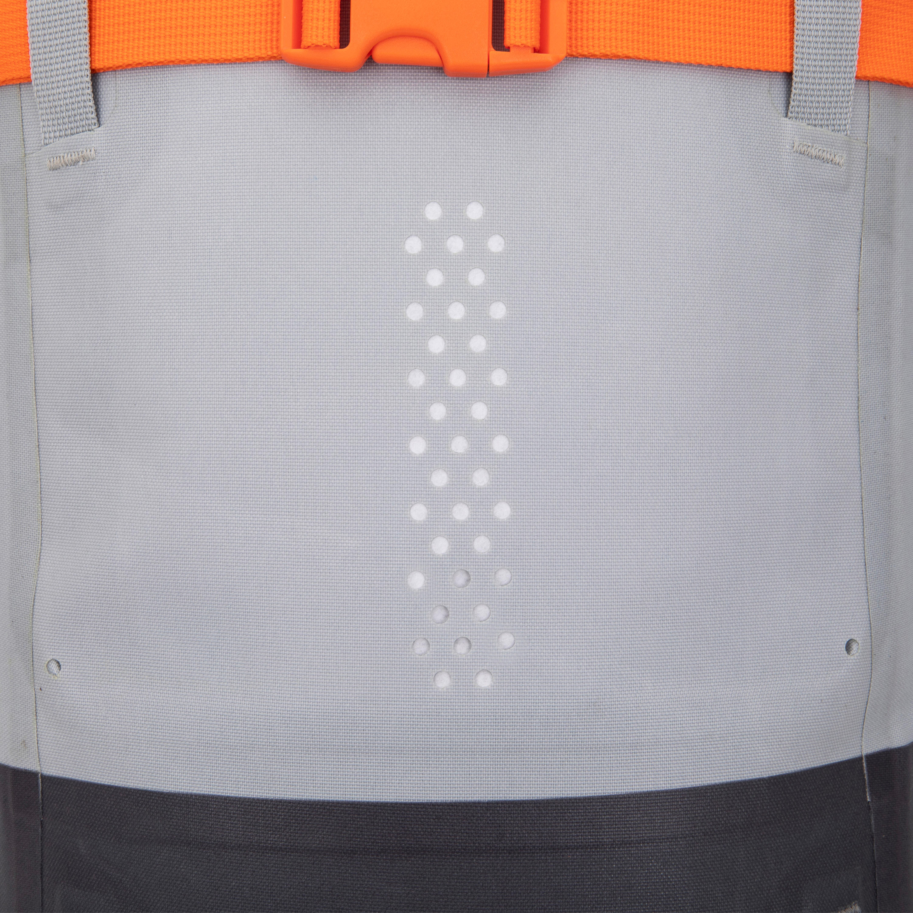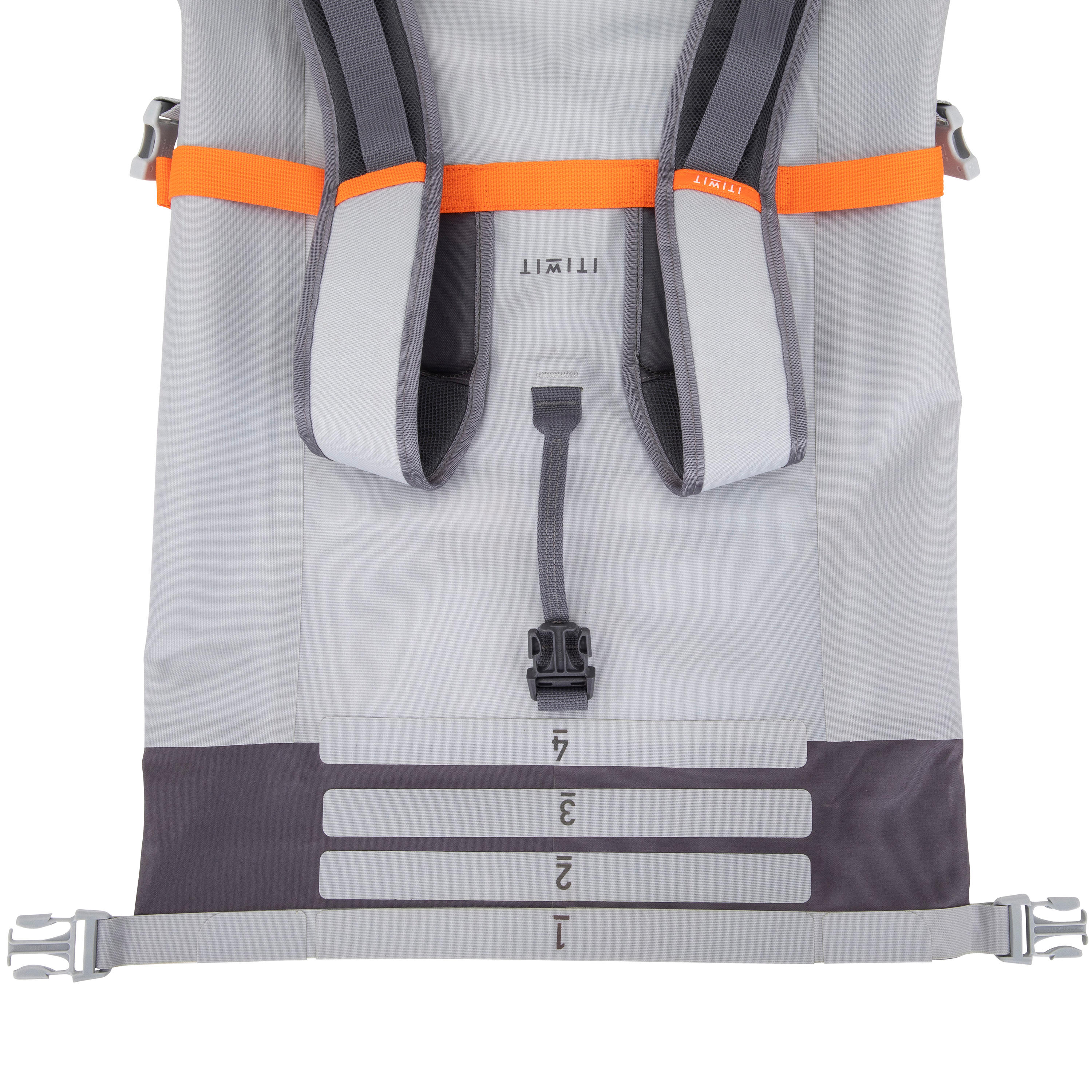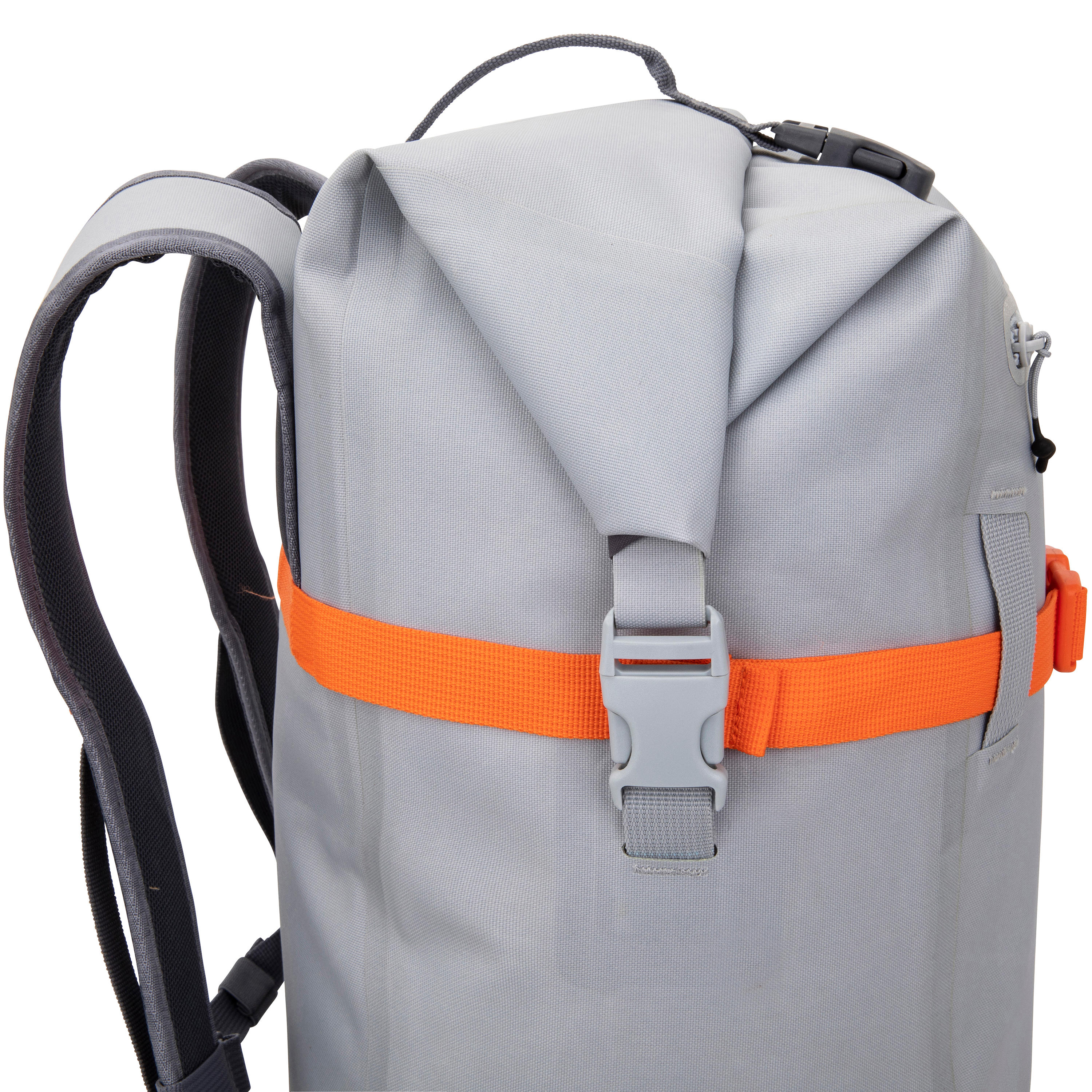 The 2 compression straps on the body of the bag can be used to attach the backpack to a SUP or a kayak equipped with fastening loops, enabling you to carry your belongings into the water and protect them.