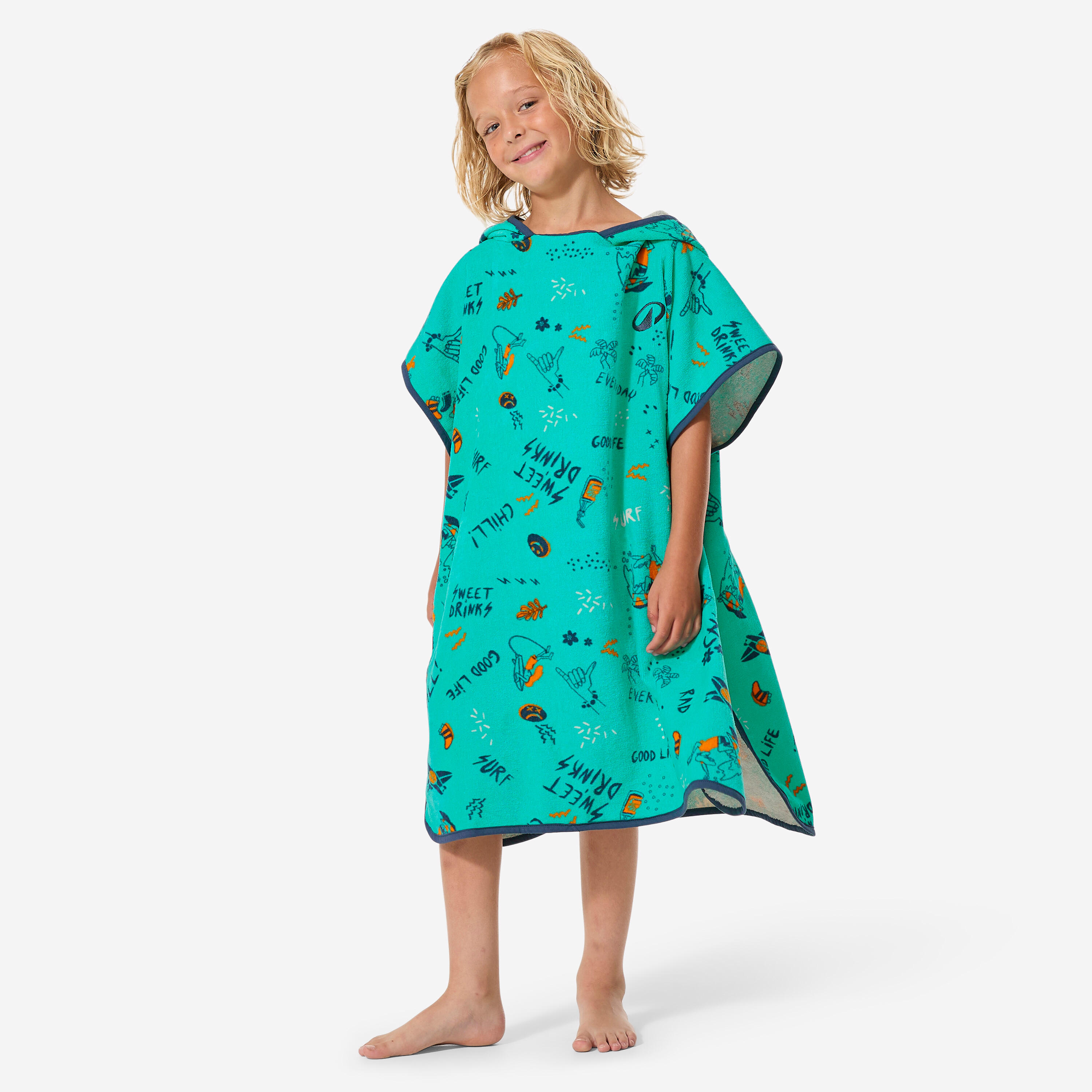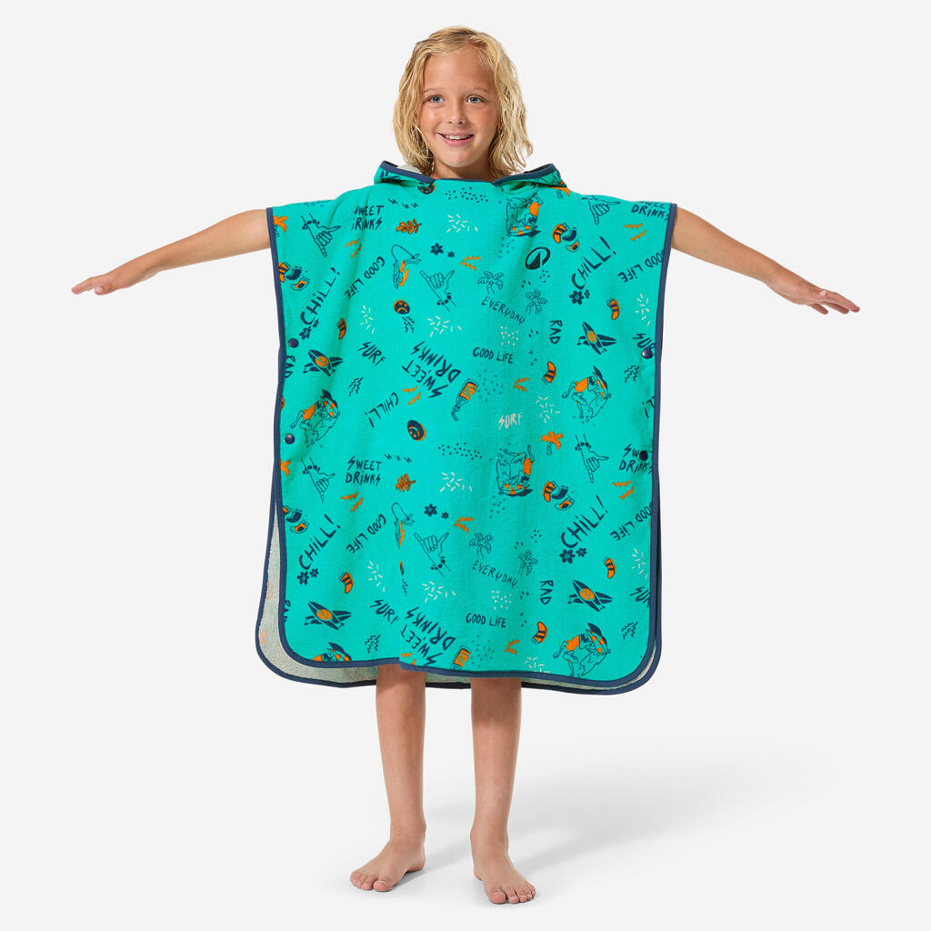 Suitable for young surfers from 110 to 135 cm, this poncho is ideal for drying off and changing after each surf session.