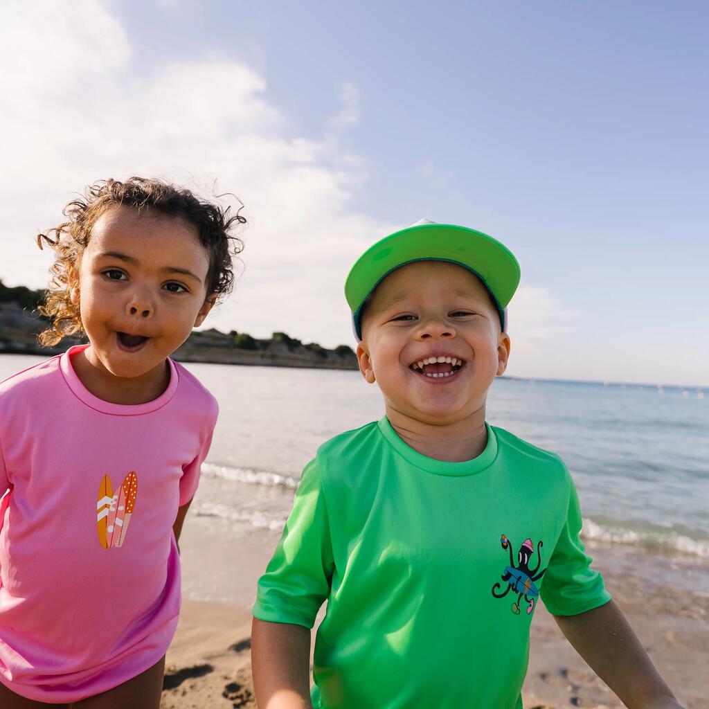 Kids’ surfing UV-protection t-shirt - 100 Poulpy green