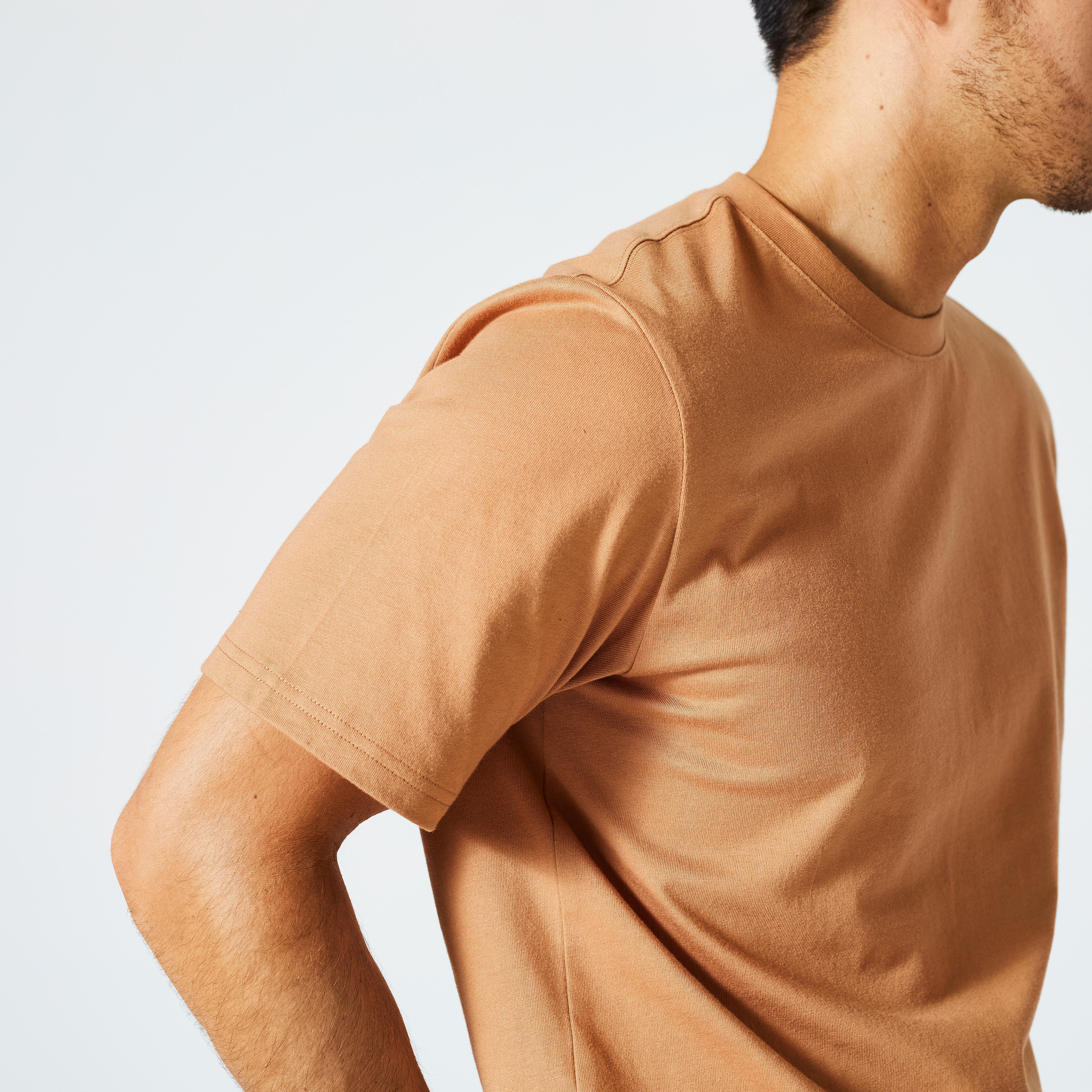 This short-sleeved men's fitness T-shirt with 190 g/m² fabric has been designed and contains 30% cotton. It's a timeless classic that you can wear agai