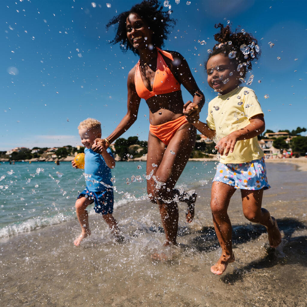 These swimming shorts with their brightly coloured patterns are designed for young kids discovering the pleasures of the water.
