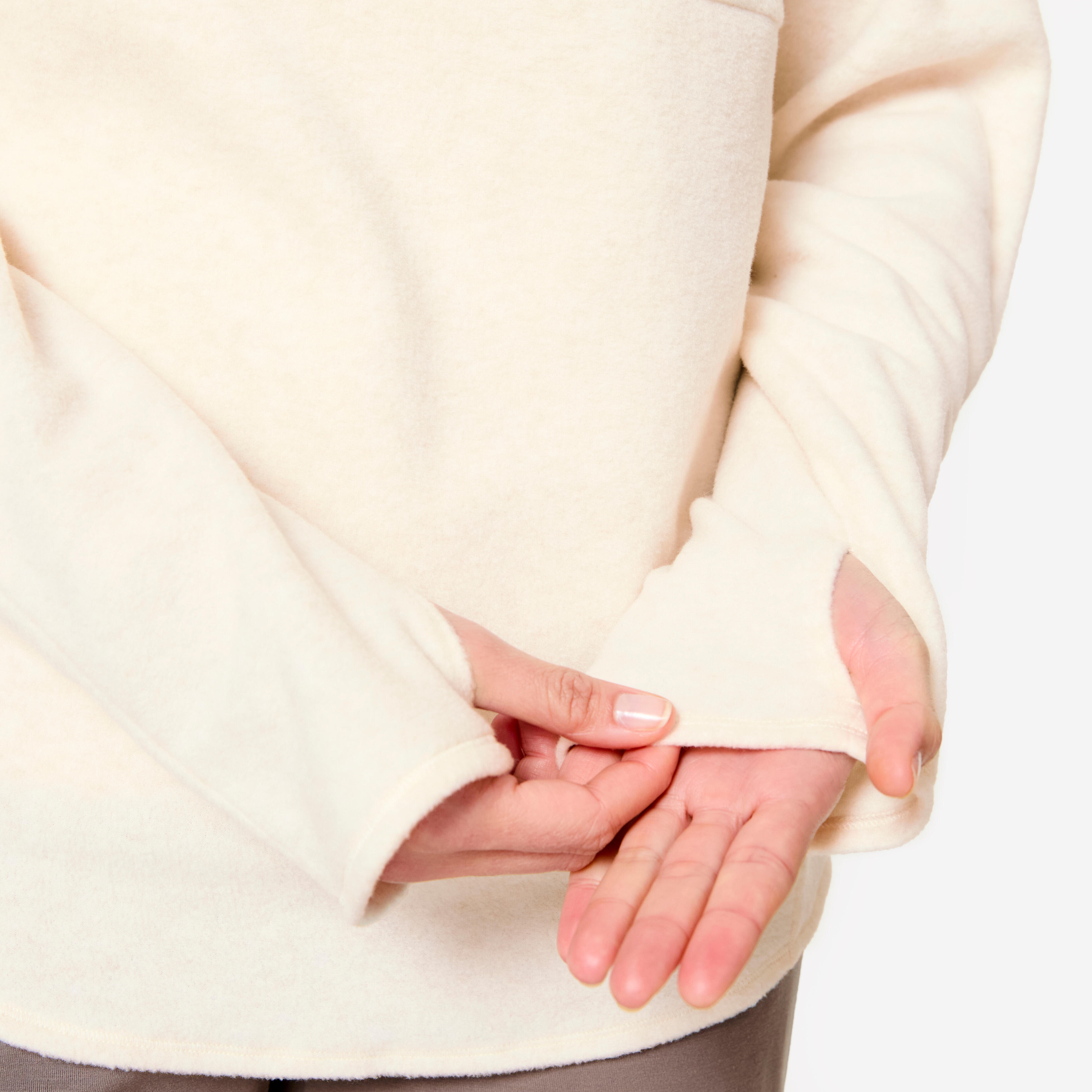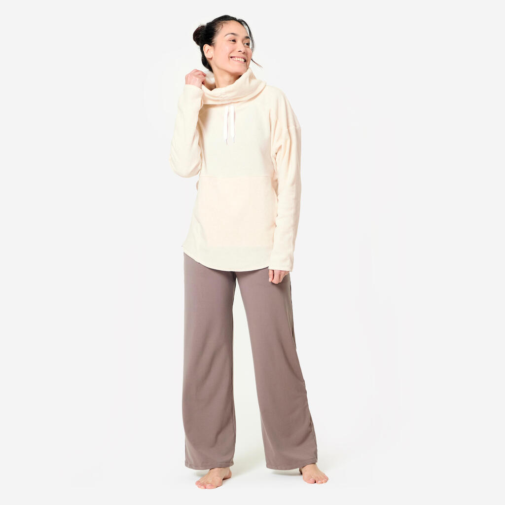 With its high neck, central pocket, and rounded shape at the bottom, this fleece sweatshirt is your best friend for retaining body heat during poses when seated or lying down.