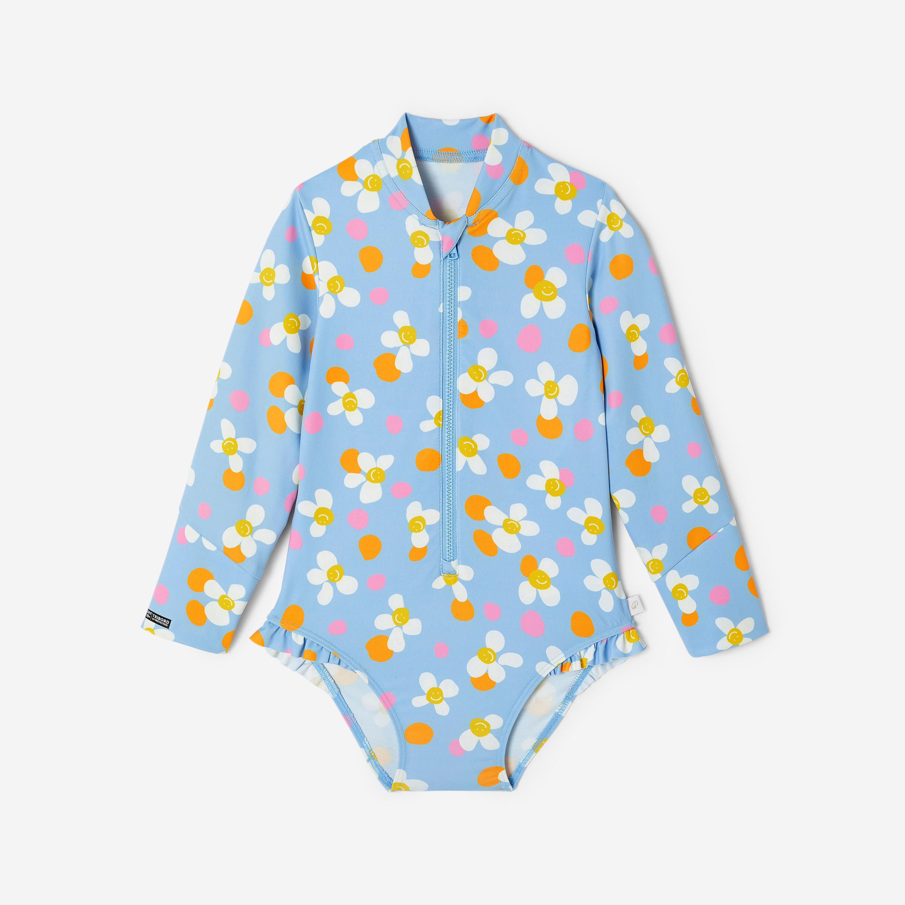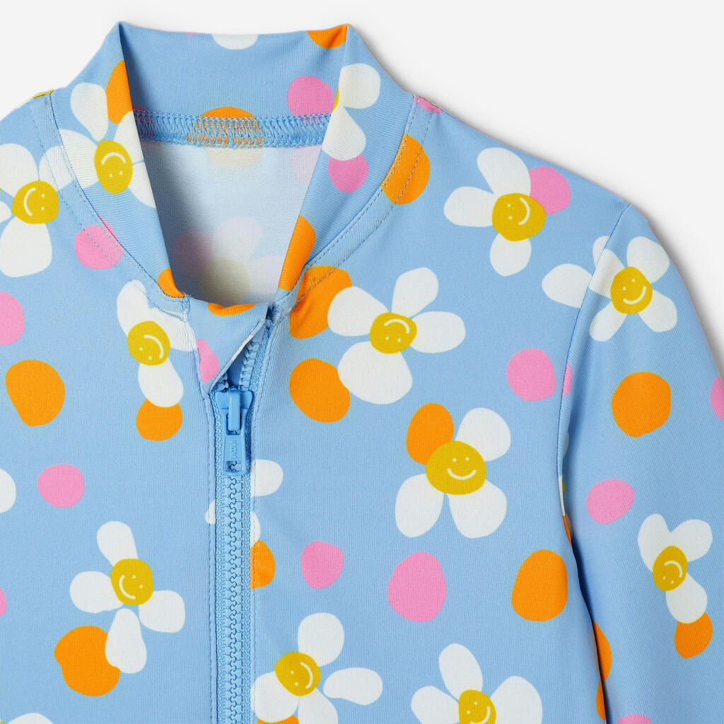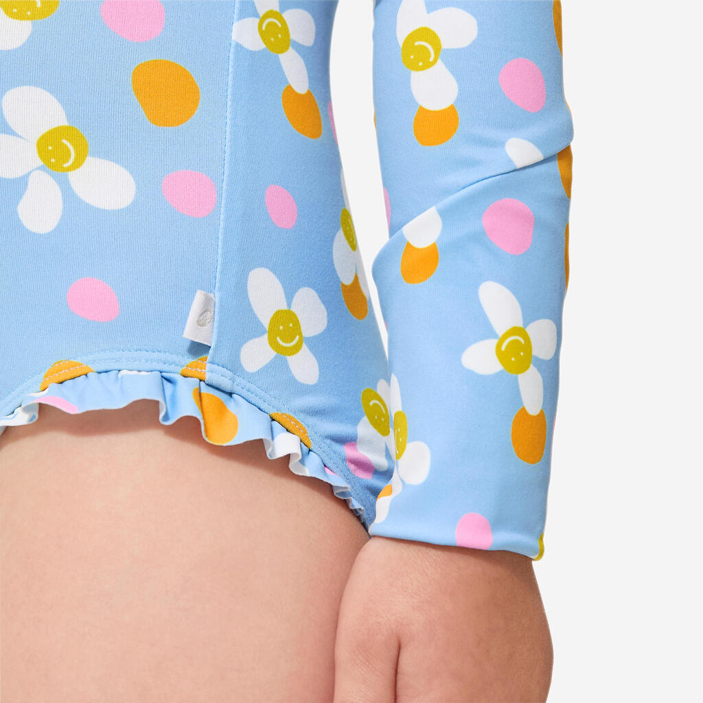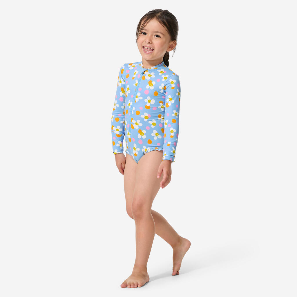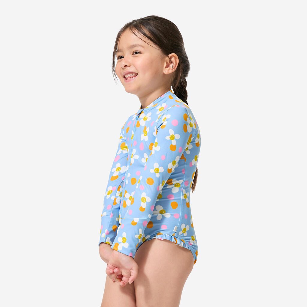 Easy to put on and take off thanks to the long front zip. This unique long-sleeved swimsuit will make little girls eager to jump in the water!