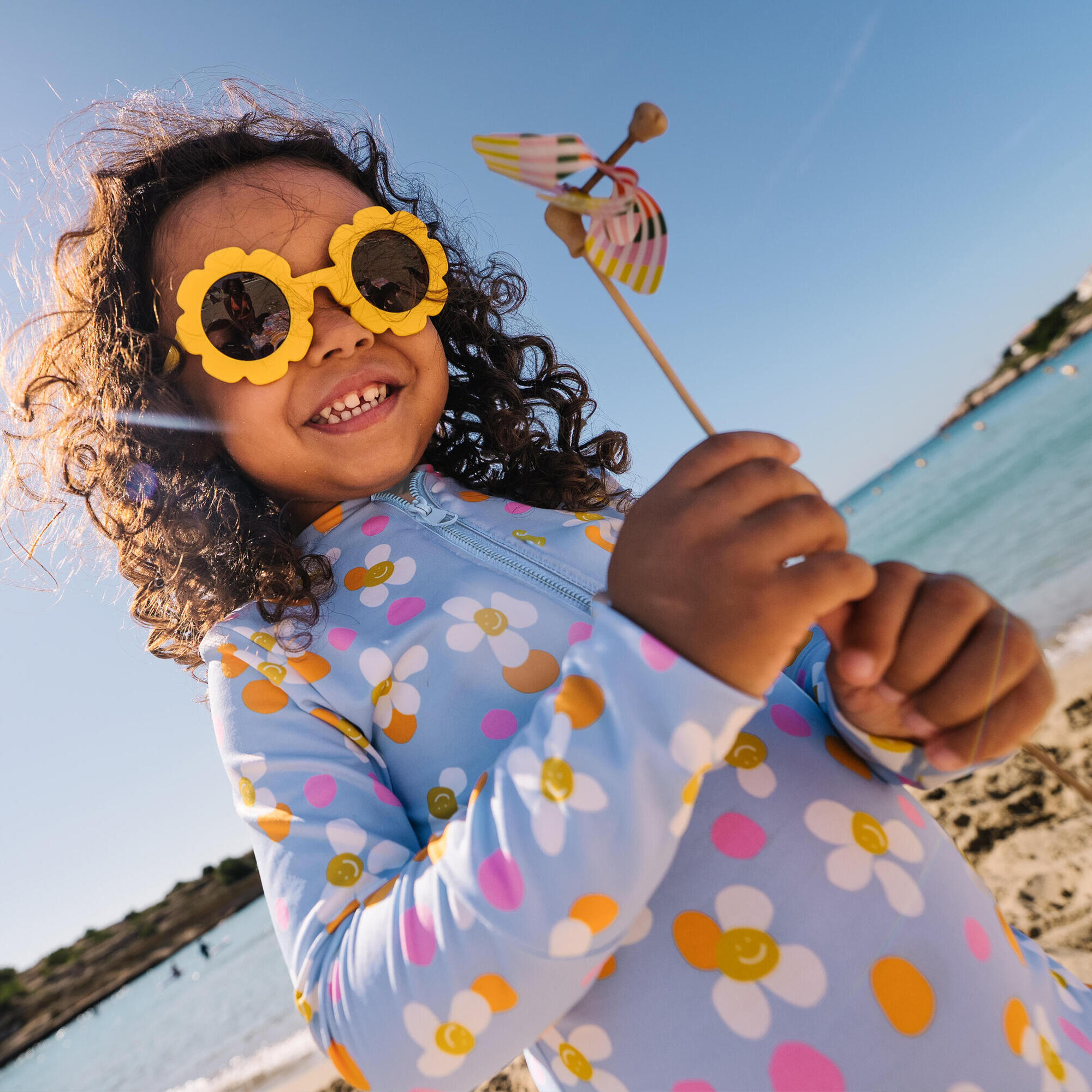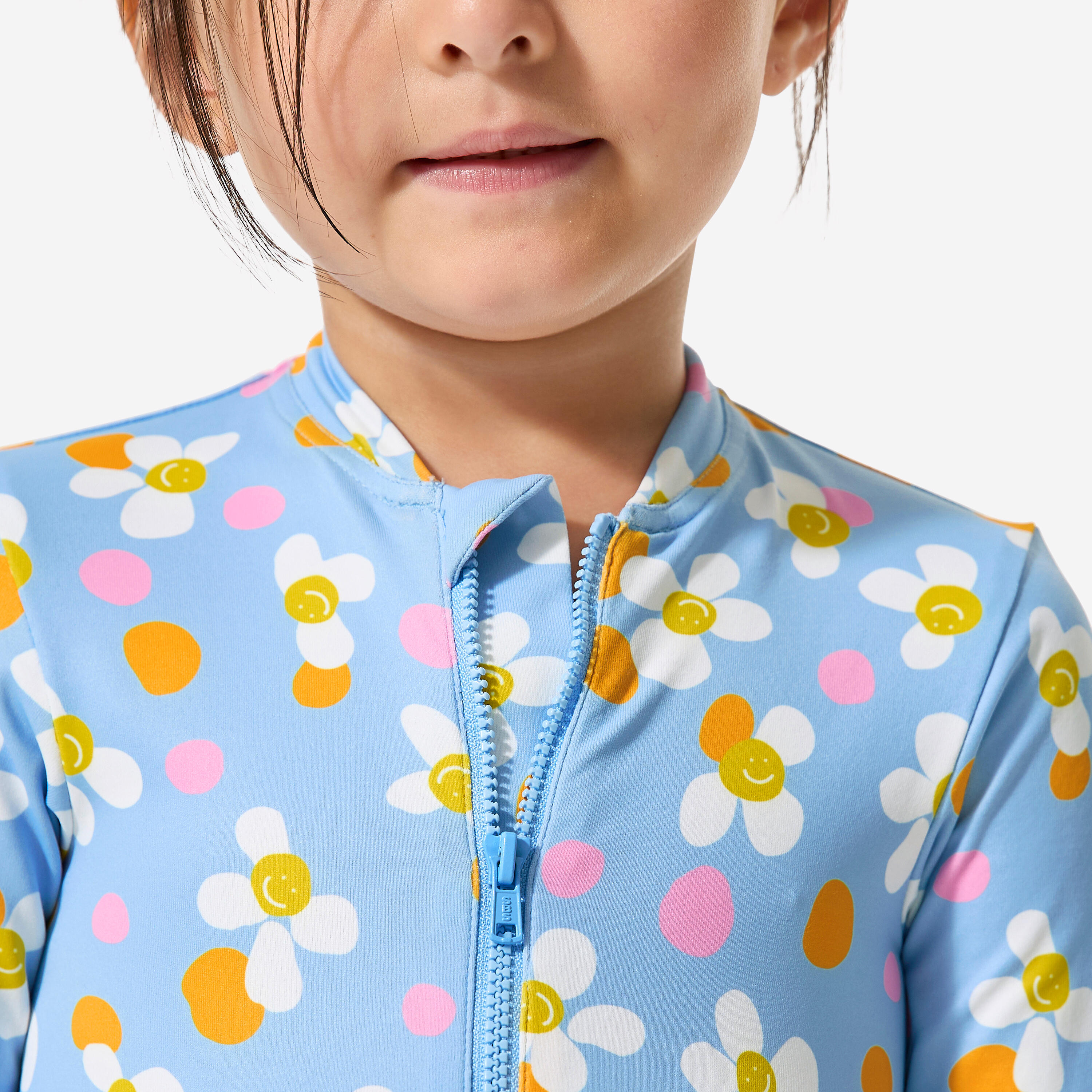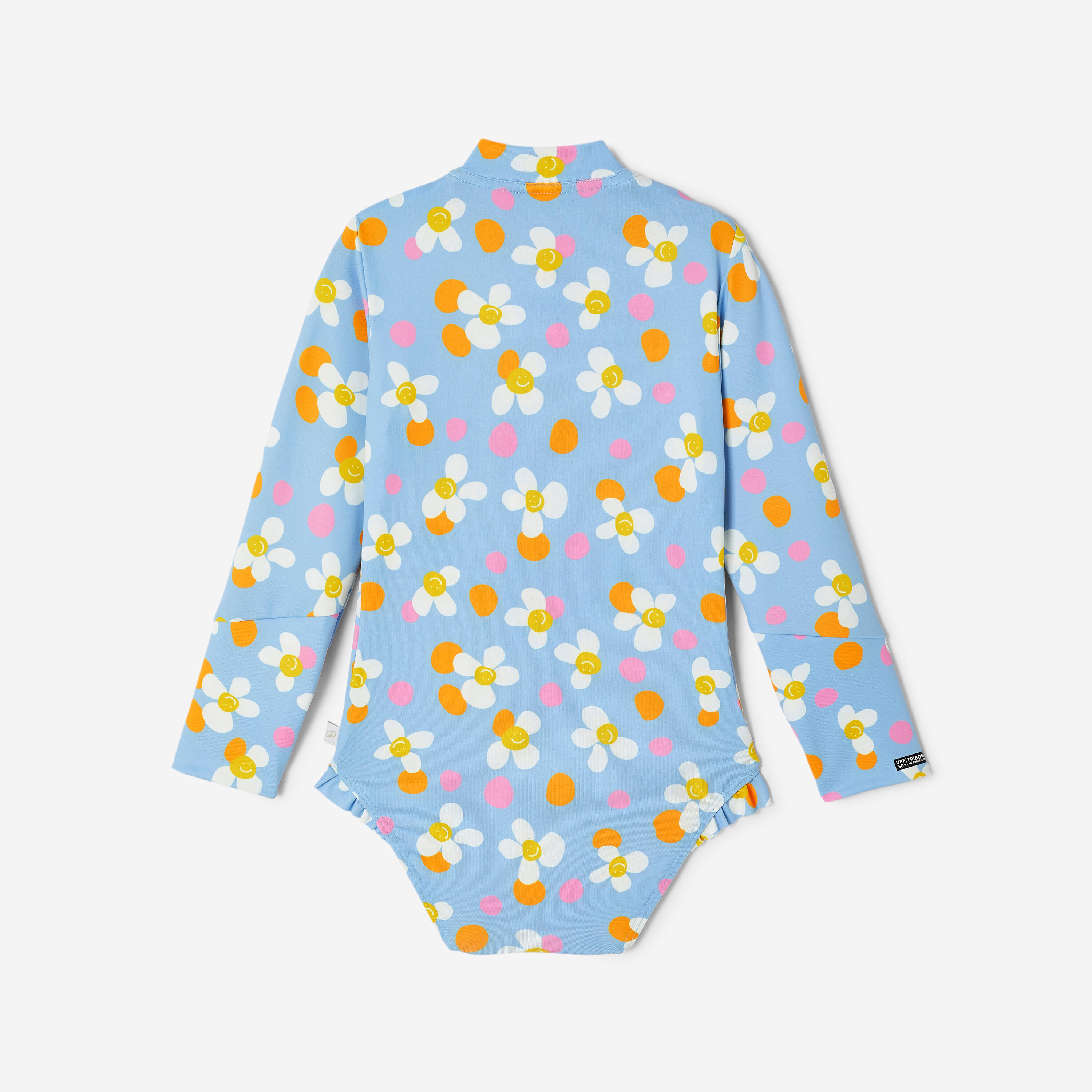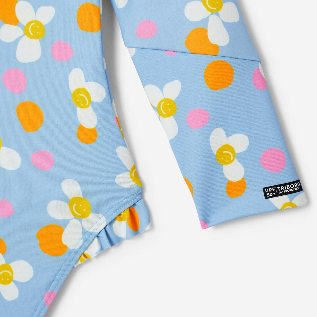 Easy to put on and take off thanks to the long front zip. This unique long-sleeved swimsuit will make little girls eager to jump in the water!