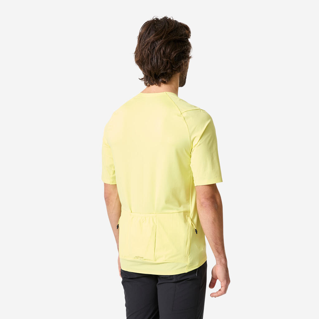 Designed for mountain biking and bikepacking in warm weather, this regular-fit jersey features three pockets, two which are zipped, and reinforced sleeves.