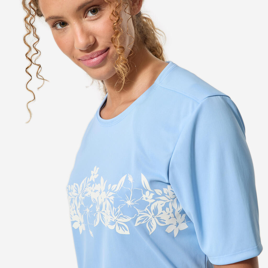 This short-sleeved t-shirt protects you from the sun, even in the water, and reduces chafing. Its loose cut and pattern give it a relaxed style both on the beach and in the water.