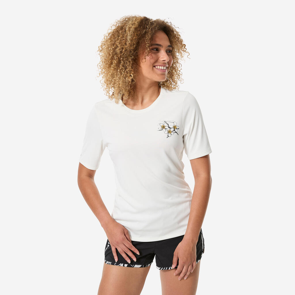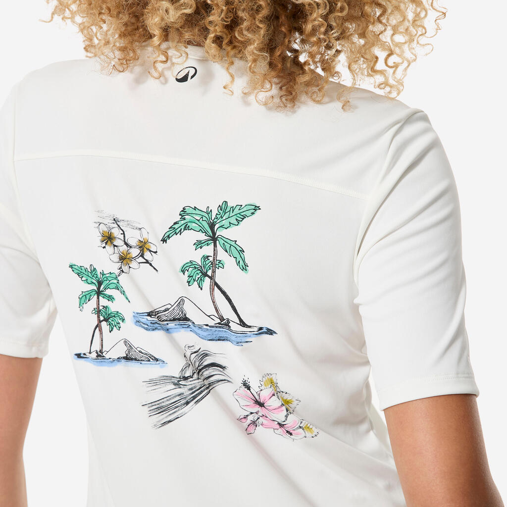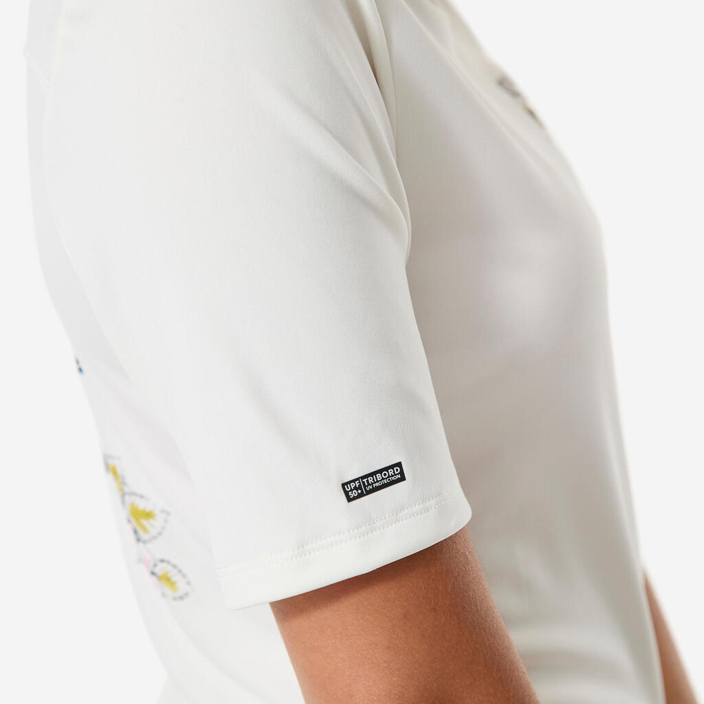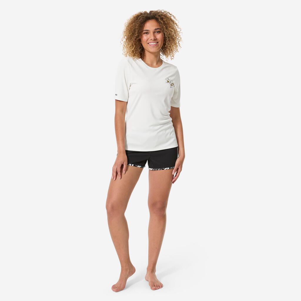 This short-sleeved t-shirt protects you from the sun, even in the water, and reduces chafing. Its loose cut and pattern give it a relaxed style both on the beach and in the water.