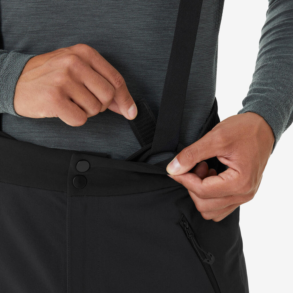 Modular with: adjustable detachable braces ventilation zip reinforced and gusseted lower leg detachable built-in gaiters.