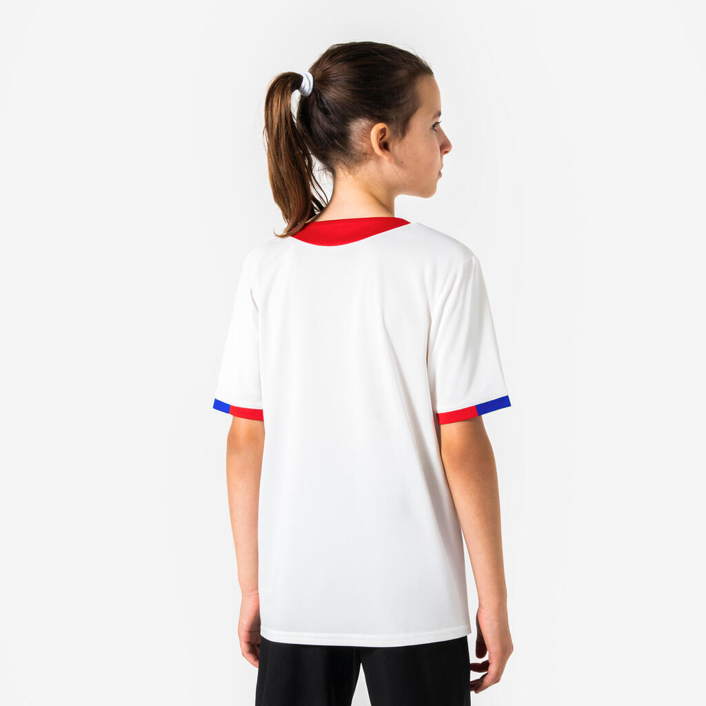 On the pitch or just going about your day, show your support for your team with this kids' supporter T-shirt. Its design allows for freedom of movement and effective moisture-wicking during matches.