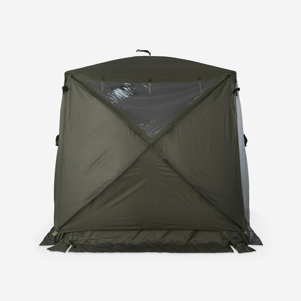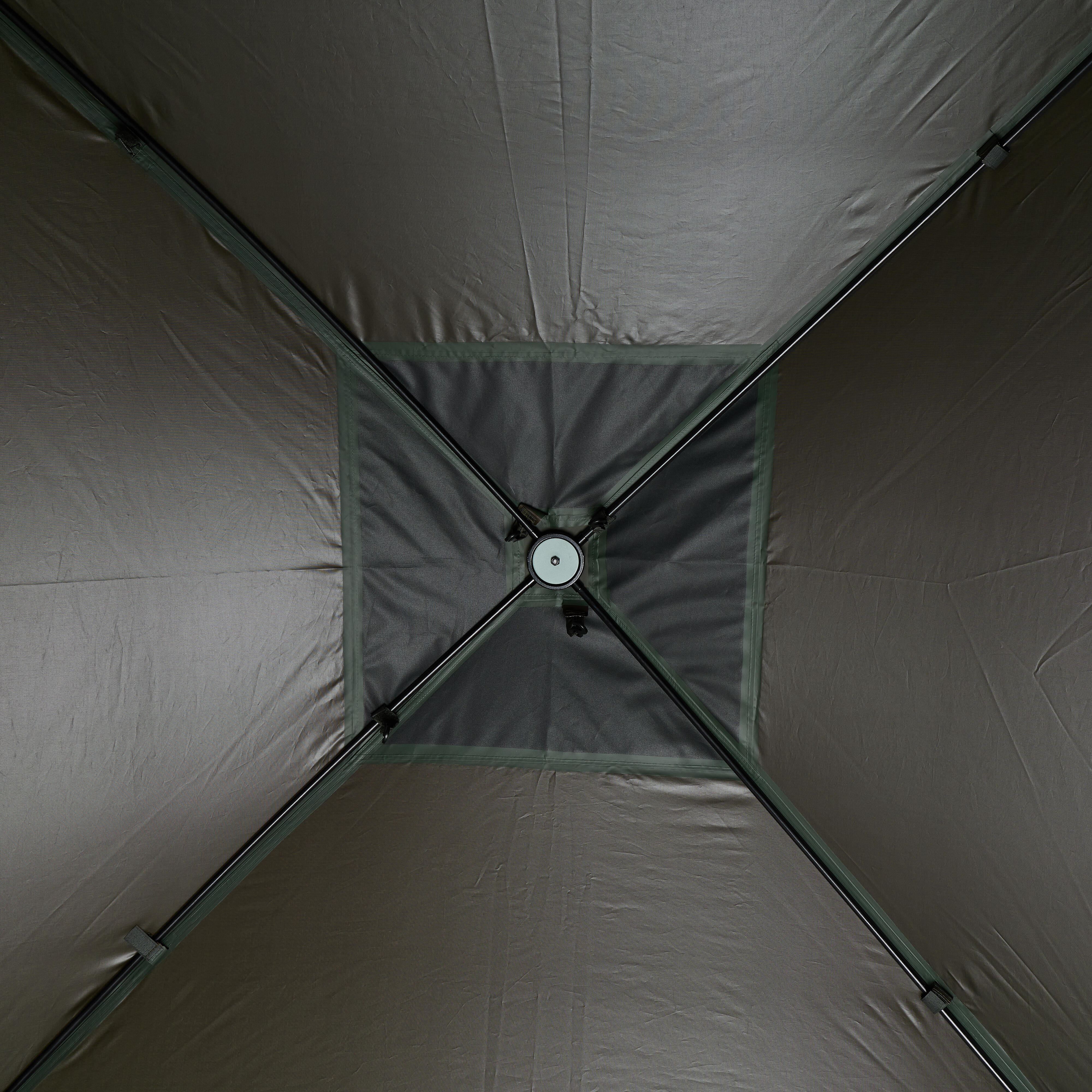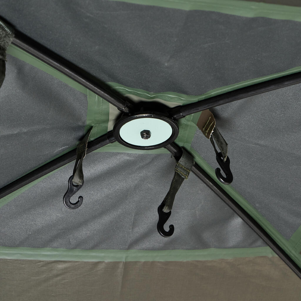 The Social Bivvy can be assembled in a jiffy, thanks to its pop-up system. Each panel has a soft central handle: simply pull on the four handles (3 side panels and 1 ceiling panel) to automatically tauten the hoops and form the structure. A design that allows for rapid assembly, even when alone on the water’s edge.