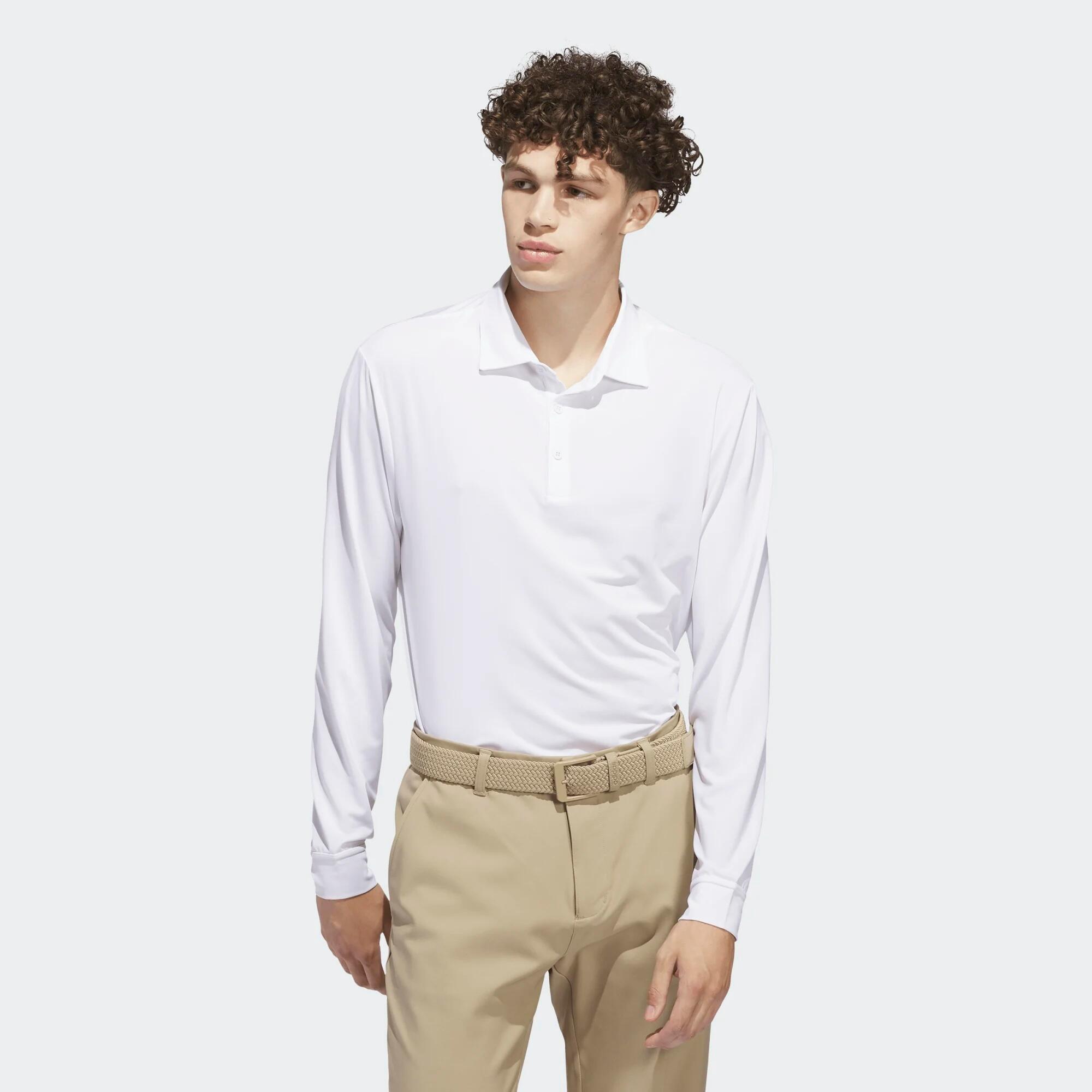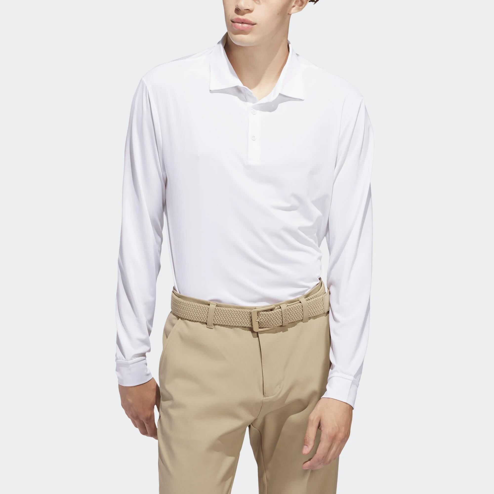 Keep your golf game flowing with this long-sleeved polo shirt. Its lightweight, breathable fabric wicks away moisture, while its ergonomic cut ensures freedom of movement.