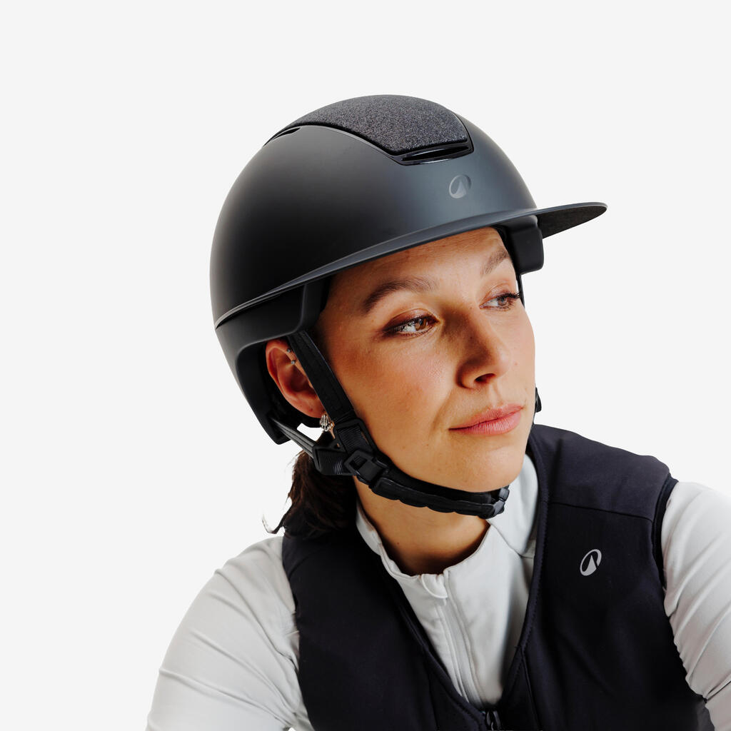 This riding helmet was designed to be light and comfortable, even when wearing it for an extended period of time. Weight (by size):