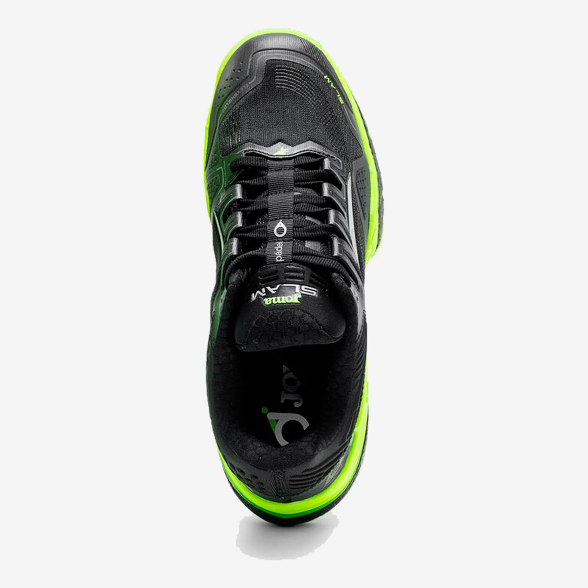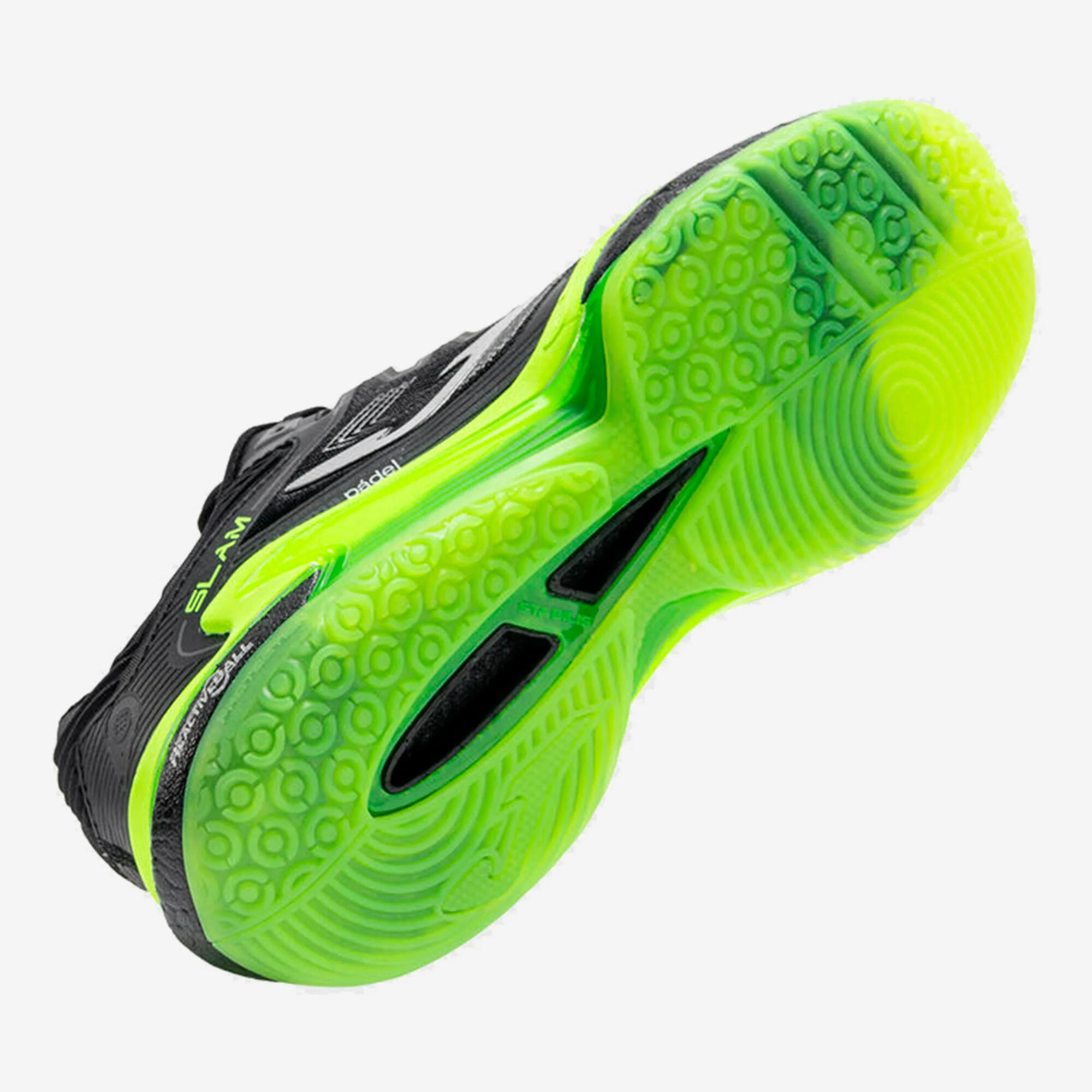 High-resistance rubber outsole featuring an Omni pattern of small circular studs. This design delays abrasion wear and facilitates the controlled sliding necessary to reach difficult balls faster.