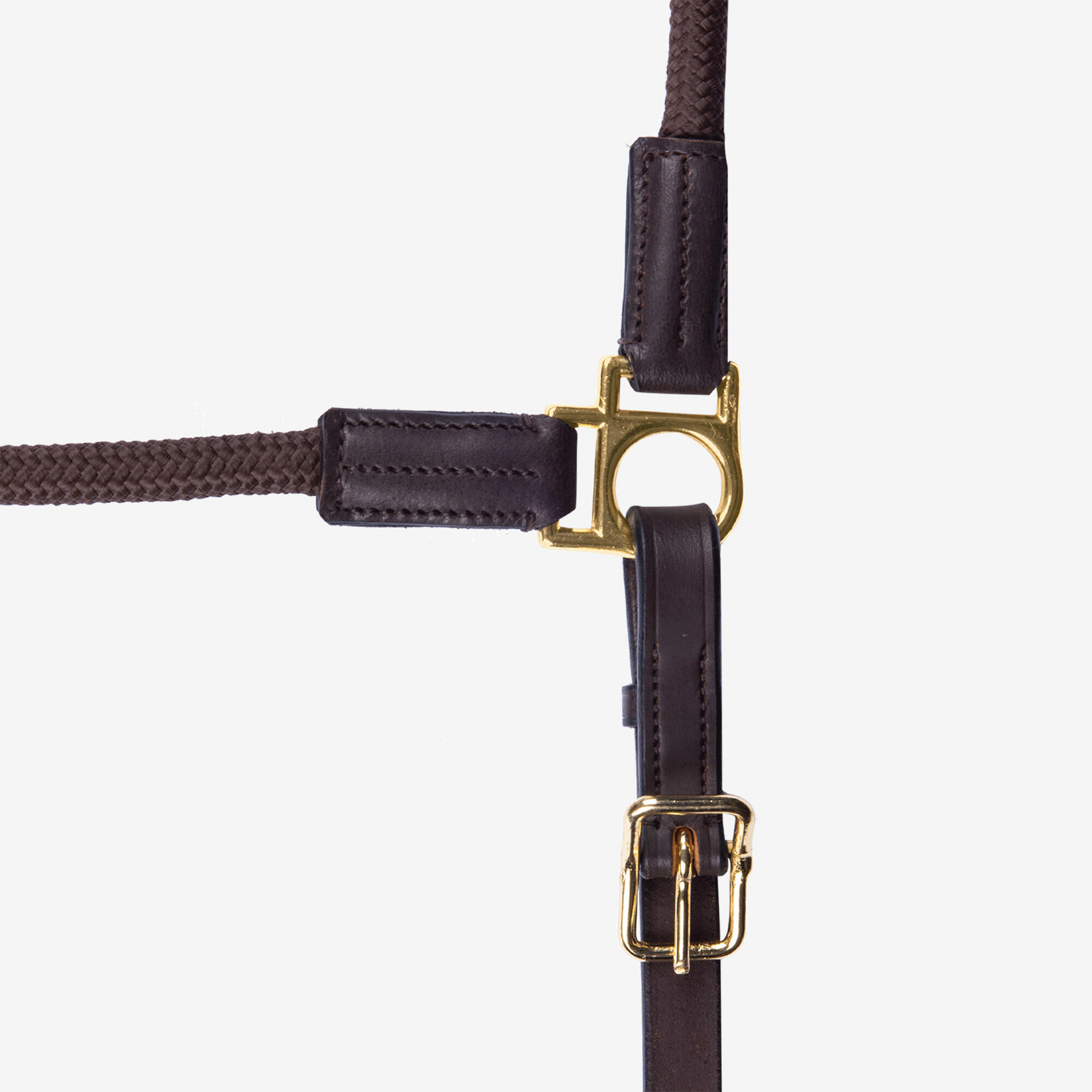 Athletic halter made of soft leather around the neck with elegant rope details. Simple adjustment of the chin strap and head piece.