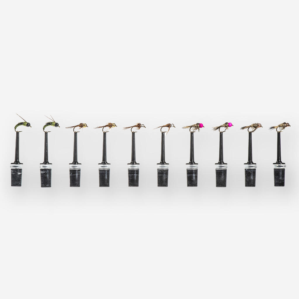 A selection of nymphs on barbless hooks that will allow you to target trout and grayling in various conditions when these fish are feeding underwater.