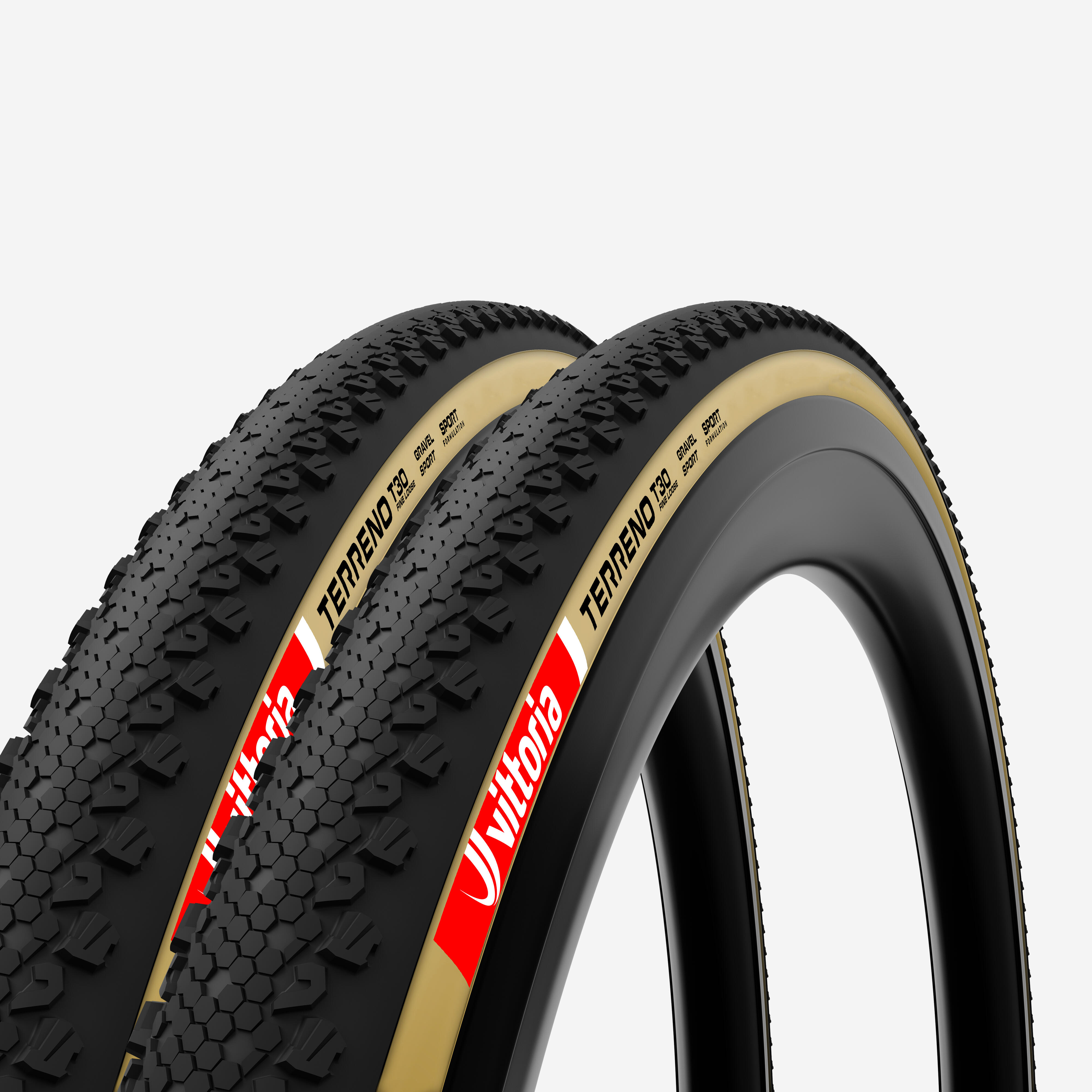 Set of 2 gravel tyres with flex bead Vittoria Terreno T30 700x38 tanwall (beige)