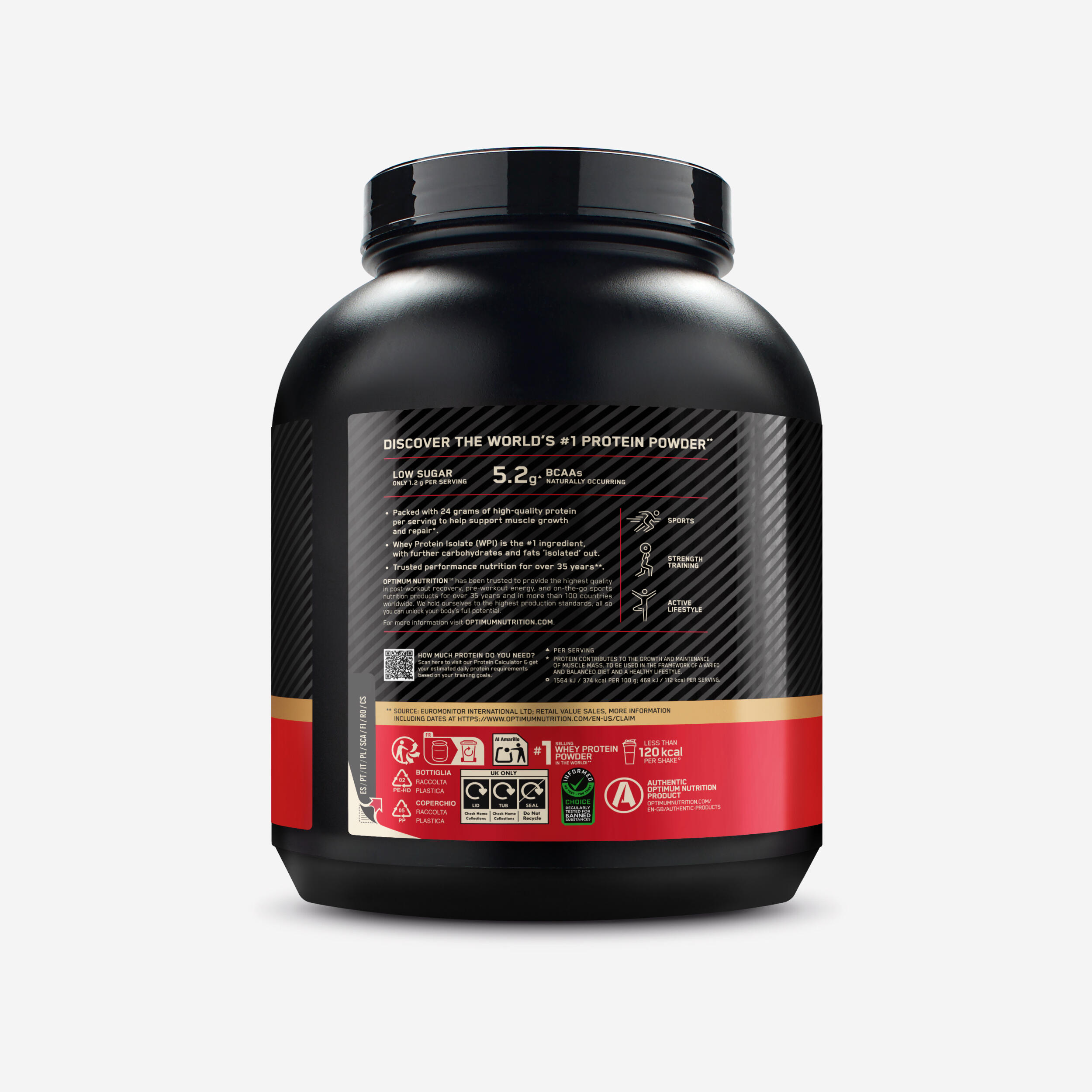 24 g of whey protein, low in sugar and less than 120 calories, 5.5 g of BCAAs per serving.