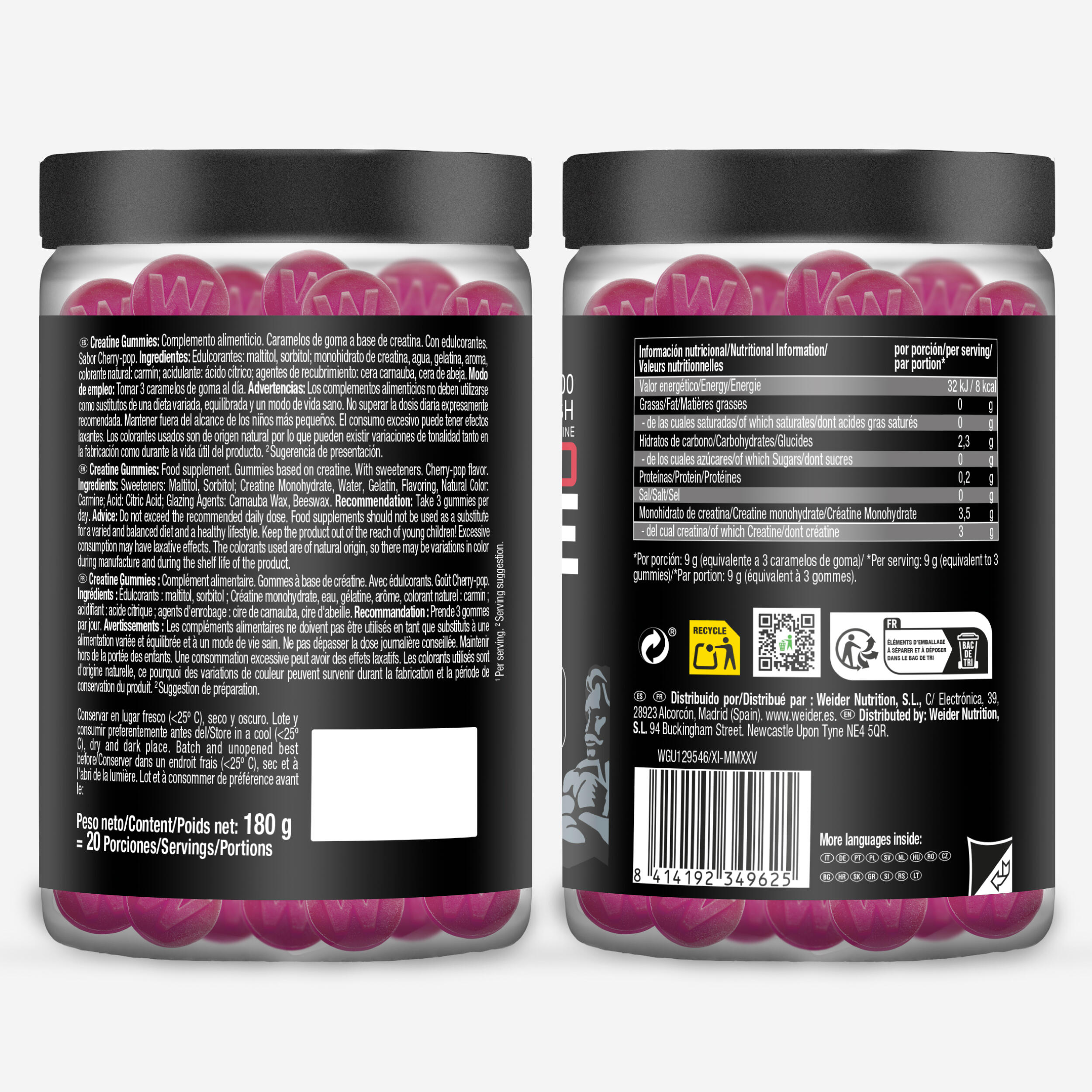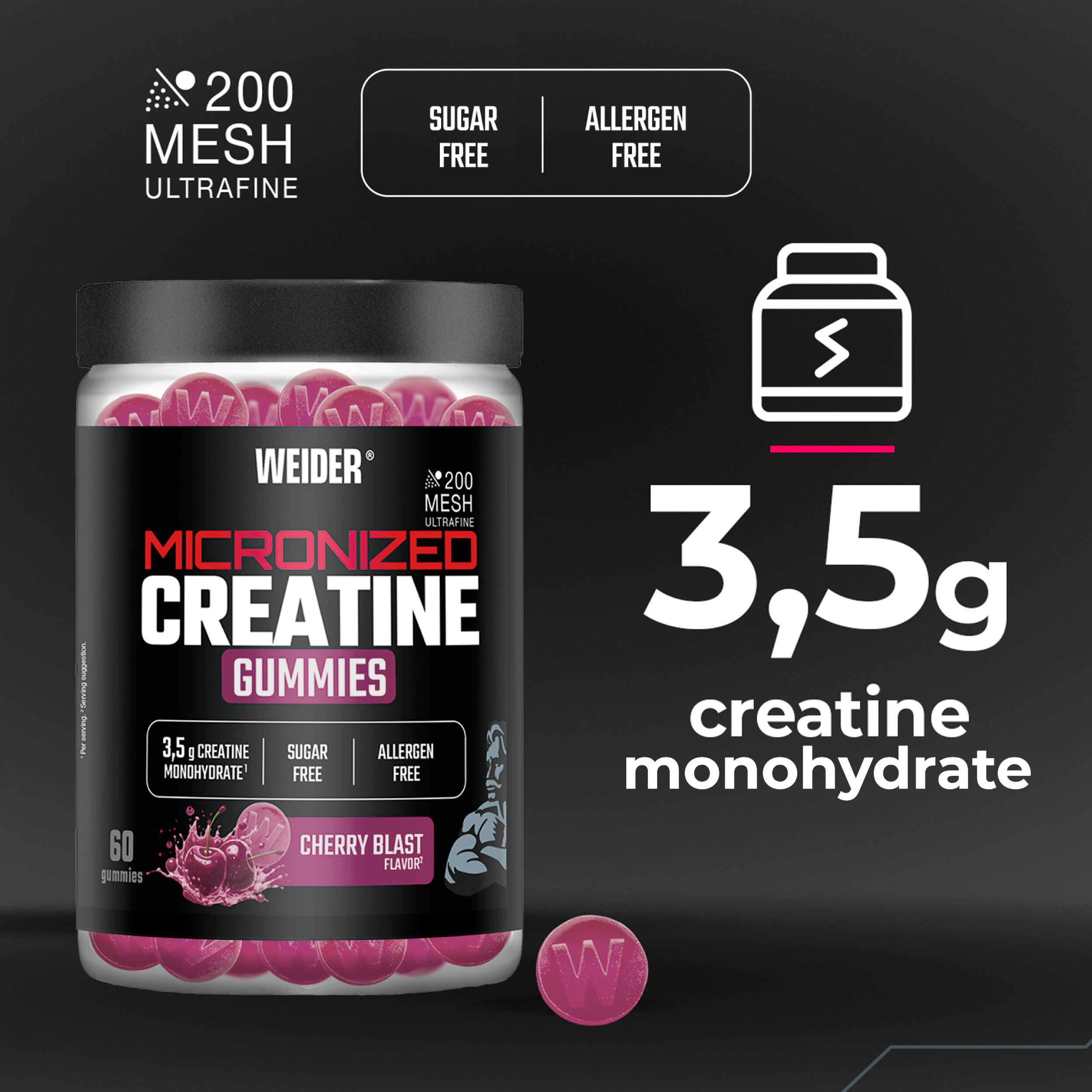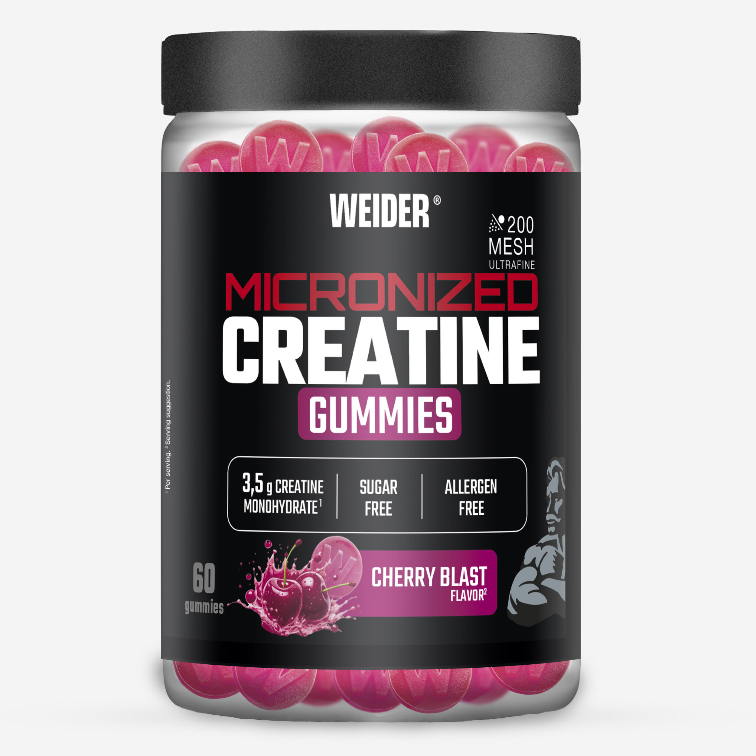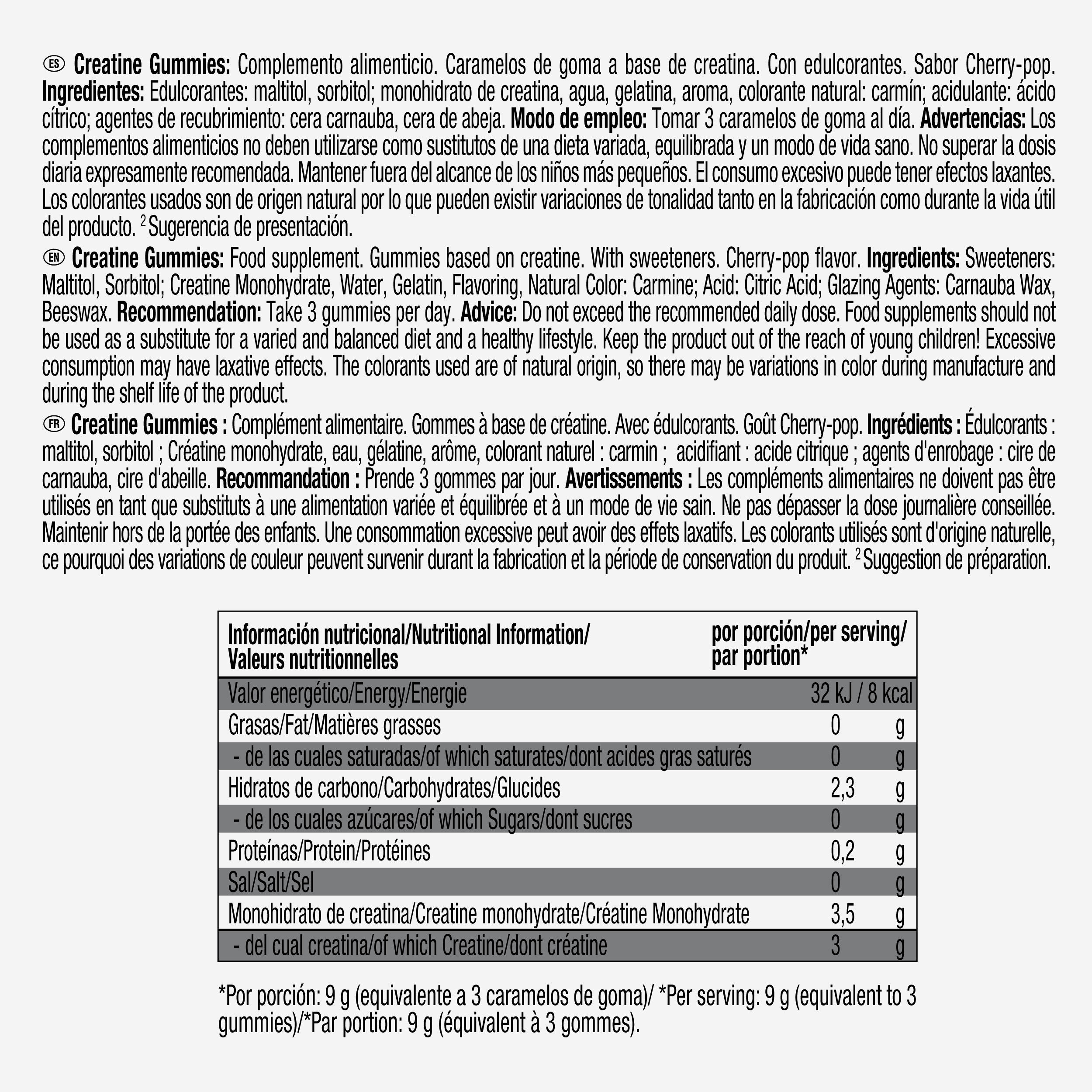 Micronised creatine monohydrate gummies help increase physical performance during short, high-intensity bursts of activity.