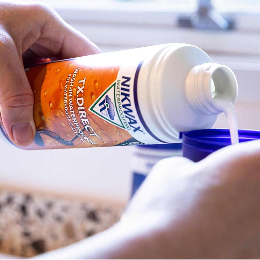 Immerse 1Â clean garment in 7.5L of lukewarm water in a basin or a sink. Add 100ml of TX.Direct. Stir, leave to stand for 5Â minutes, then stir again. Rinse thoroughly until the water runs clear